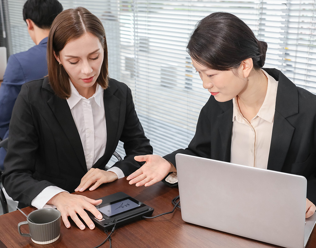16-inch ultra large e-signing display with a fingerprint scanner.