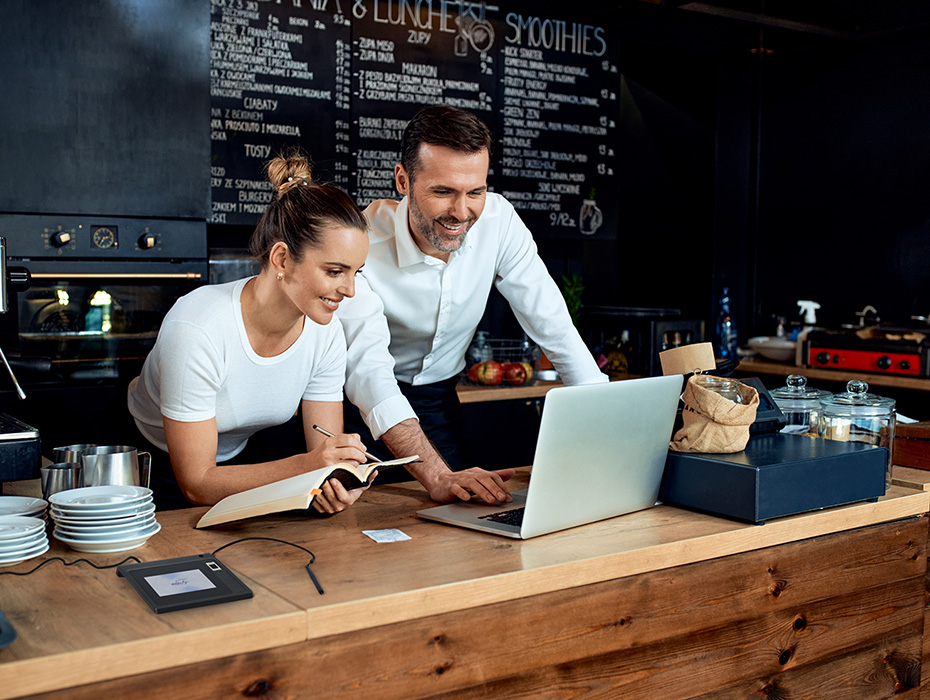 5-inch e-signing display equipped with a fingerprint scanner available.
