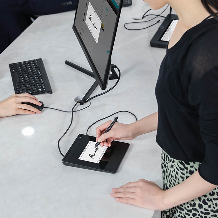 5-inch e-signing display equipped with a battery-free digital pen.
