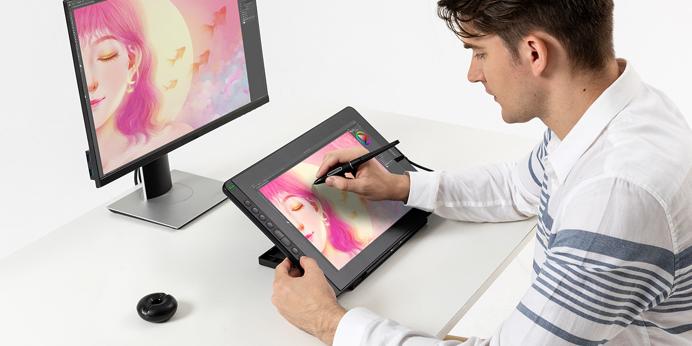 Kamvas 16(2021) is designed as a slim pen display with 12mm in thickness and 1.26kg in weight,which has well maintained the balance between a sufficient workspace on the 15.6inch panel and a favorable portability.