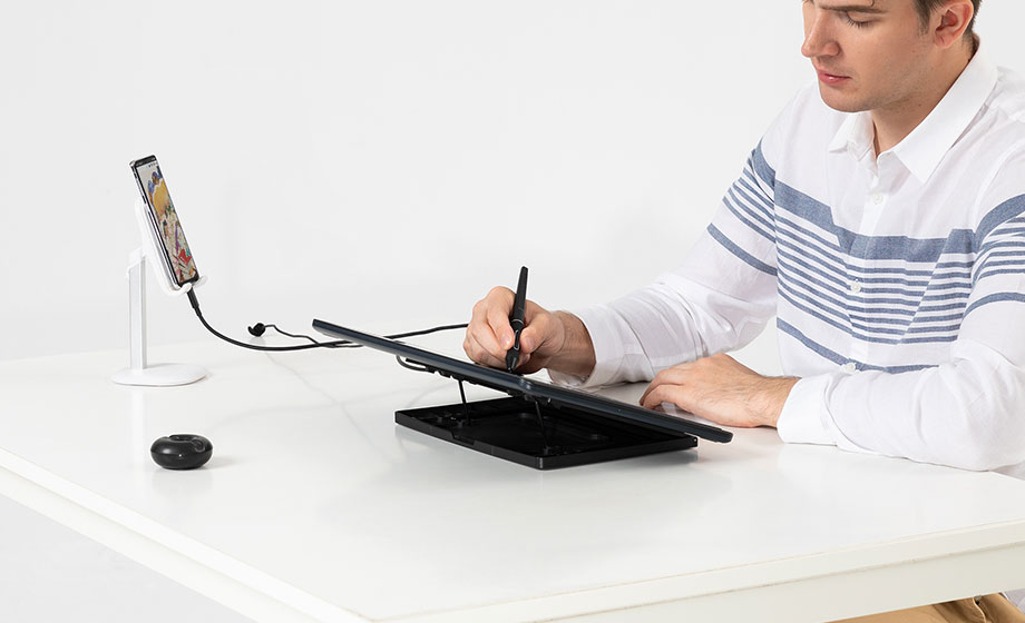 To enable a more favorable user experience, users can work at their best angles with the help of the adjustable stand ST300. Pen holder PH05, where 10 spare nibs can be found for nib replacement, comes together inside the box supports both horizontal and vertical pen rest.