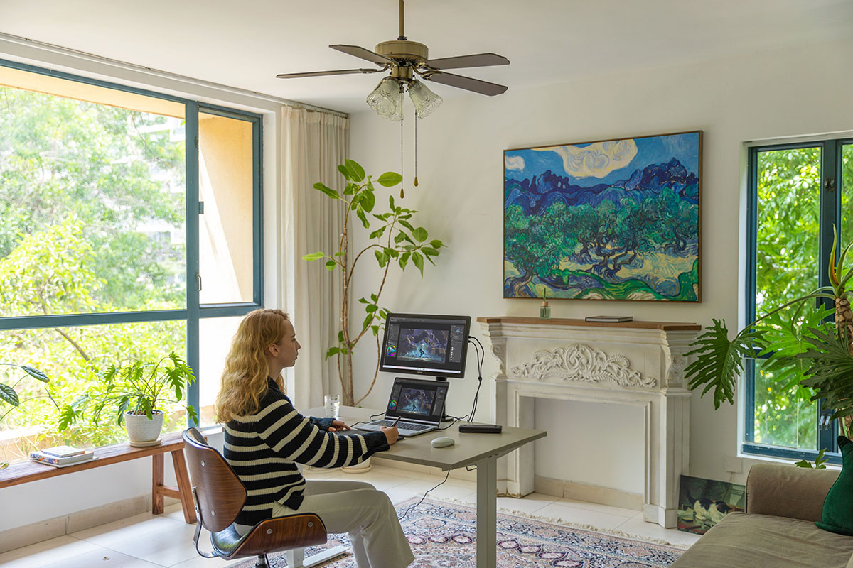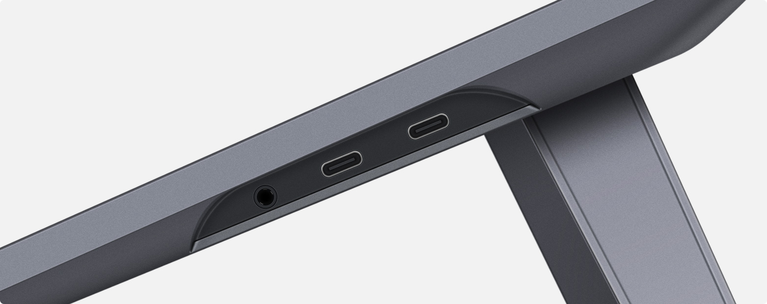 Blind-mate ports, reverse charging capability, a built-in stand, and VESA mount compatibility offer comprehensive artist-friendly working convenience.