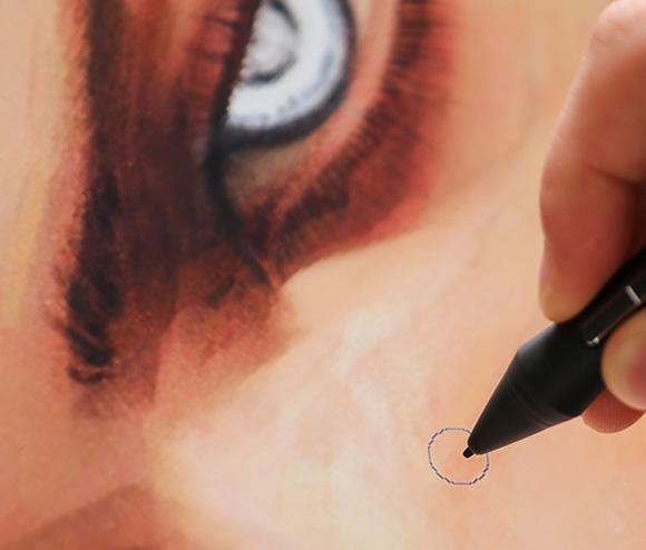 Ensuring precise pen performance is a top priority for Huion. With revolutionary PenTech 4.0, the edge precision[10] of the screen was enhanced, and tilt auto-alignment[11] decreased the cursor offset issues. Moreover, we've reduced the size of the pen nib[12] to prevent any obstruction of your line of sight that might occur.