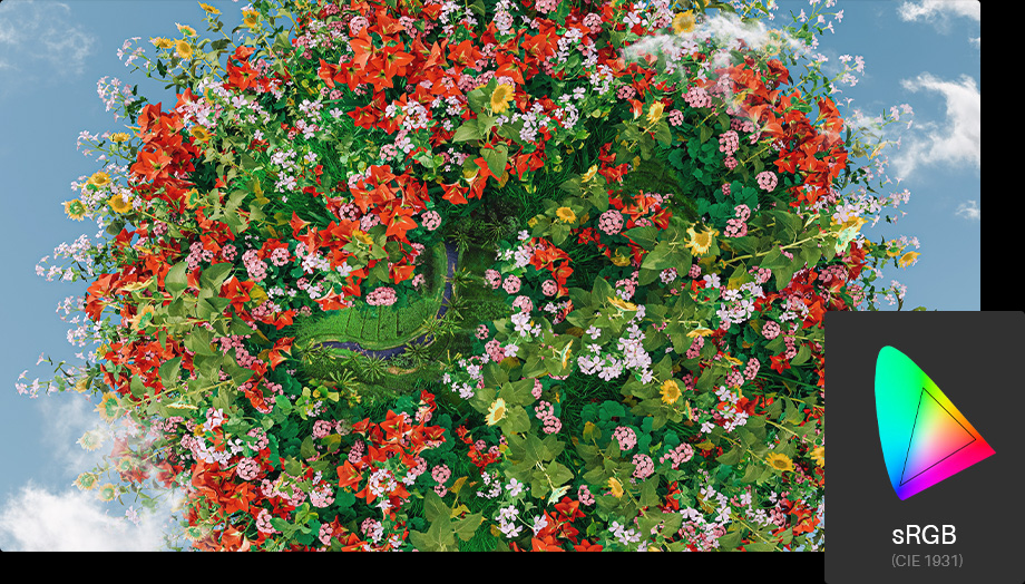 3D LUT hardware calibration and ΔE<1.5 guarantee superior color accuracy. Also, over one billion shades of color and wide color gamut coverage immerse you in true-to-life colors.