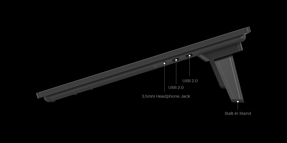 The top-mounted ports design and a flexible keyboard holder ensure a clean and inspiring creative environment.