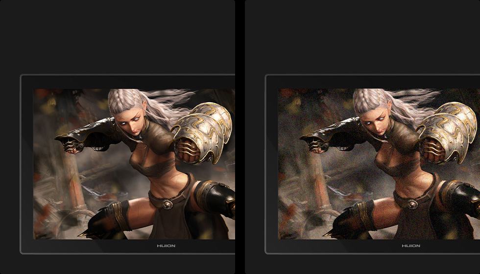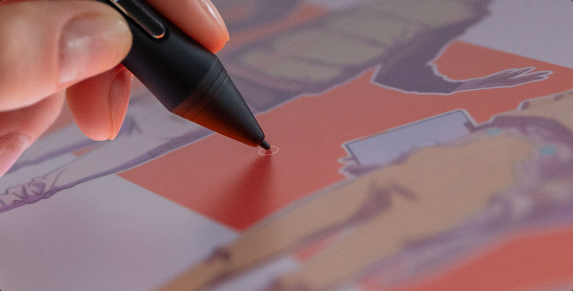 Ensuring precise pen performance is a top priority for Huion. With revolutionary PenTech 4.0, the edge precision [10] of the screen was enhanced, and tilt auto-alignment [11] decreased the cursor offset issues. Moreover, we've reduced the size of the pen nib [12] to prevent any obstruction of your line of sight that might occur.
