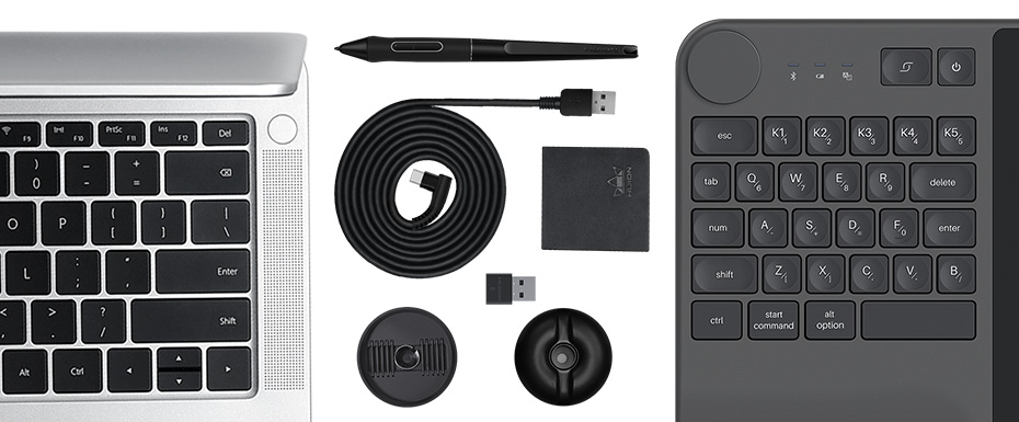 A pen tablet that equipped with an one-handed keyboard.